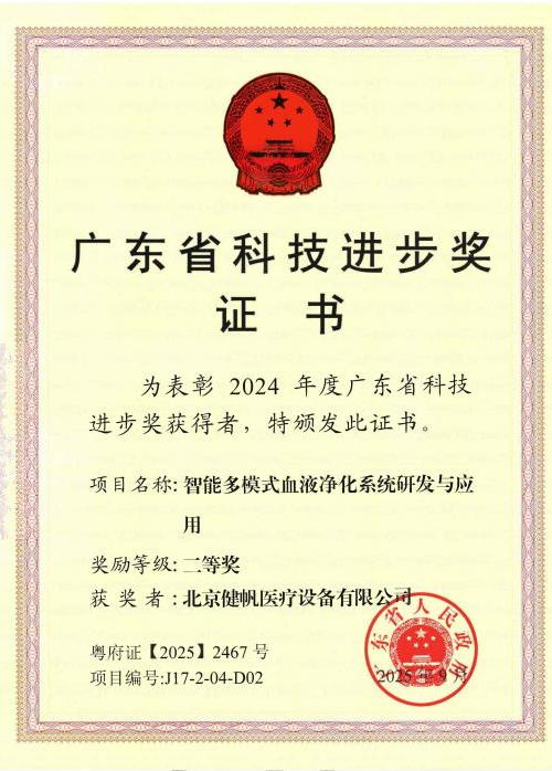 廣東省科學(xué)技術(shù)獎是由廣東省科學(xué)技術(shù)廳設(shè)立的全省最高級別科技獎項,旨在表彰在推動科技進步和經(jīng)濟社會發(fā)展中作出卓越貢獻的個人與組織。此次獲獎不僅彰顯了健帆集團在血液凈化設(shè)備領(lǐng)域的持續(xù)創(chuàng)新能力,也體現(xiàn)了集團在腎病、肝病和急危重癥領(lǐng)域攻關(guān)關(guān)鍵技術(shù)難題、提供解決方案的深厚積累與實踐成效。